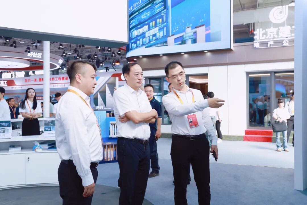 中國工程院院士崔愷、中國勘察設(shè)計(jì)協(xié)會理事長朱長喜等行業(yè)領(lǐng)導(dǎo)參觀中國中元展位。